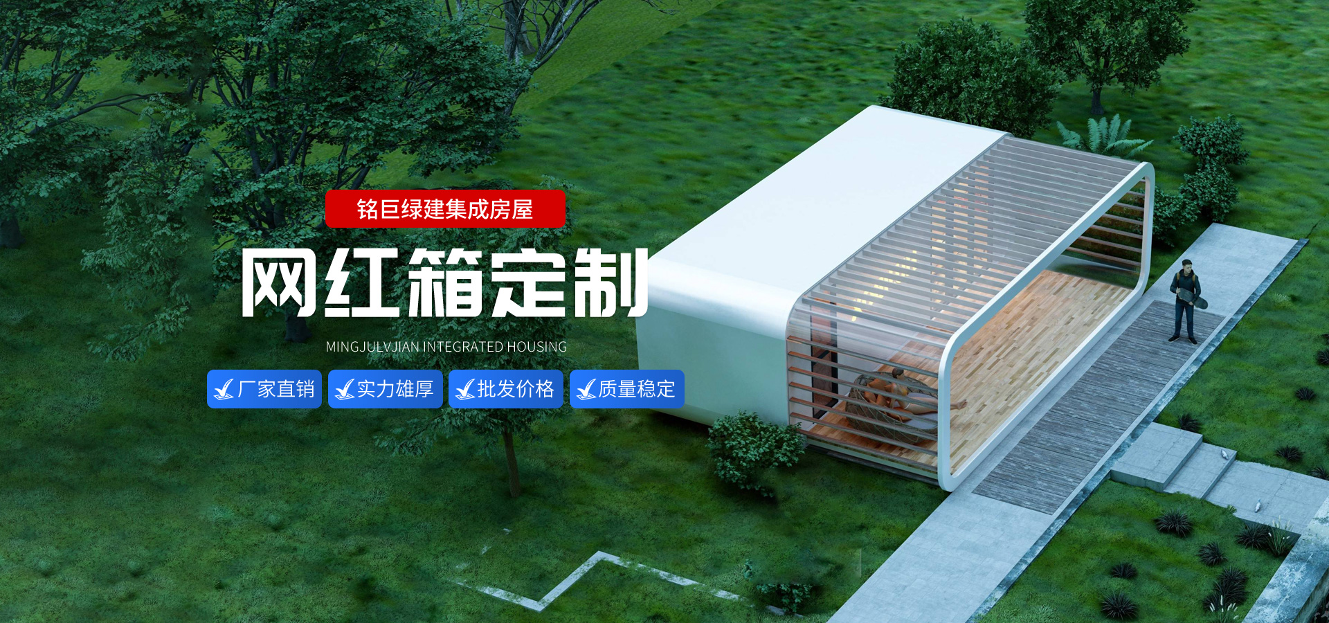 • 銘巨綠建·企業優勢銘巨綠建主營打包箱房、活動板房、集成房屋等,全國批發,大量庫存,隨時發貨,深受客戶好評